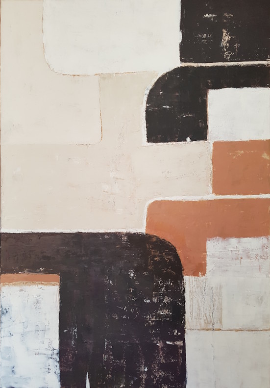Ich bin eine abstrakte Künstlerin aus Berlin, die in der Öl/Kaltwachstechnik arbeitet. Dies ist eine sehr umweltfreundliche Technik. Ich habe einen Abschluss als Kunstlehrerin und einige Semester Architektur studiert. Die Themen meiner minimalistischen Kunst sind die Natur, Architektur und der Mensch. Anders als viele Minimalisten beginne ich nicht mit einem Entwurf, sondern schöpfe aus meiner Intuition. Aus anfänglichem Chaos auf der Leinwand schält sich dann wie durch Magie eine innere Ordnung oder Balance heraus. Die Anbindung an diese Balance ist ein wichtiges Thema für mich, was die Natur, die Gesellschaft und auch den Umgang miteinander betrifft. Dies möchte ich mit meiner Kunst vermitteln.